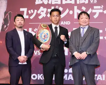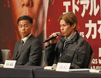 <ダブル世界タイトルマッチ会見>会見に臨む力石(右)と武居(撮影・西海健太郎) Photo by スポニチ 難関スーパーフェザー級で世界初挑戦の力石政法「負けたらやめる」勝った… ギャラリーで見る この記事のフォト 2025年03月17日の画像一覧 もっと見る 2025年03月17日の画像をもっと見る