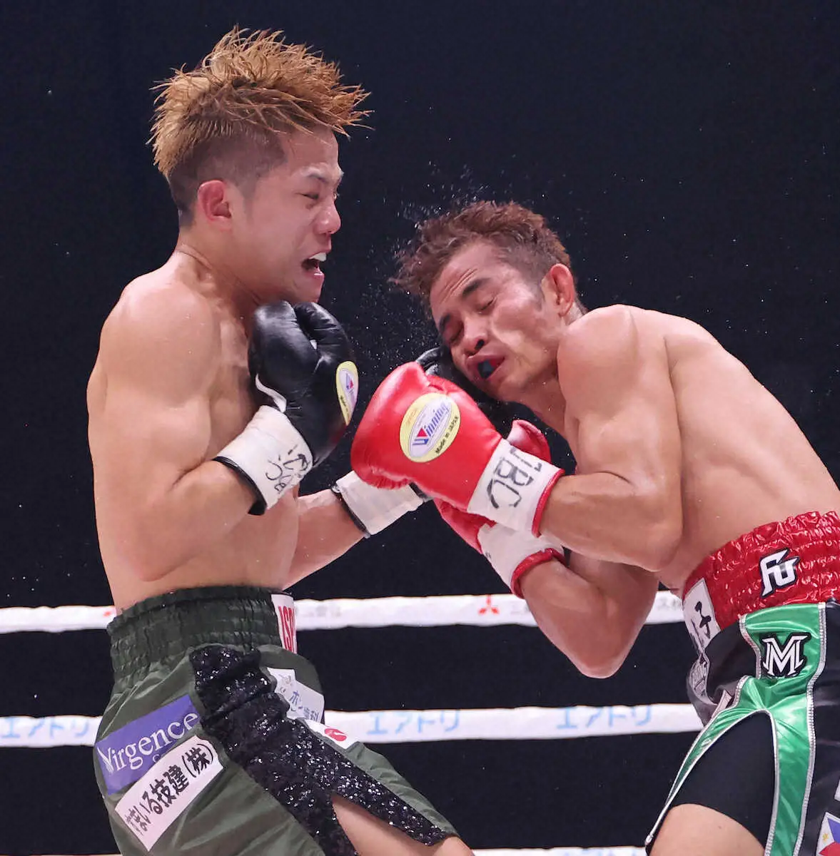 <WBCミニマム級タイトルマッチ 重岡優大×メルビン・ジェルサエム>8R、右ストレートを受ける重岡優大(右)(撮影・椎名 航) Photo by スポニチ 完敗の重岡優大、眼窩底骨折の疑いで病院へ “見えない右”は「一発もらった… ギャラリーで見る この記事のフォト 2025年03月30日の画像一覧 もっと見る 2025年03月30日の画像をもっと見る