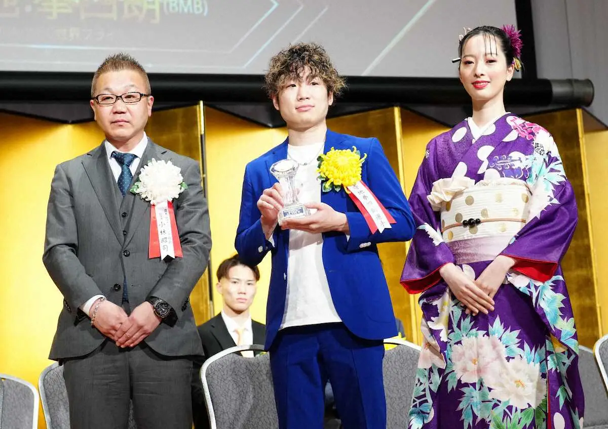 ボクシング2024年度年間優秀選手表彰式が31日、都内の東京ドームホテルで行われた。WBA、WBC世界フライ級統一王者・寺地拳四朗(=BMB)は優秀選手賞で表彰。13日に激闘したユーリ阿久井政悟(=倉敷守安)と再会した。「前の通りに仲良くリラックスしてしゃべれた。戦友だなといい感じに思い、またスパーリングしましょうと話した」と笑顔で会話が弾んだ。