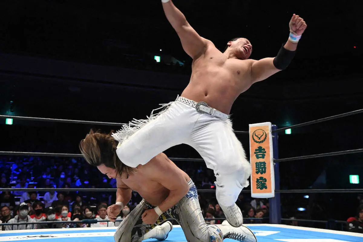 大の字の棚橋(手前)マイクアピールする海野(C)新日本プロレス Photo by 提供写真 海野に敗戦の新日・棚橋「元気づけるよう頼むぞ」 海野「安心して引退し… ギャラリーで見る この記事のフォト 2025年04月05日の画像一覧 もっと見る 2025年04月05日の画像をもっと見る