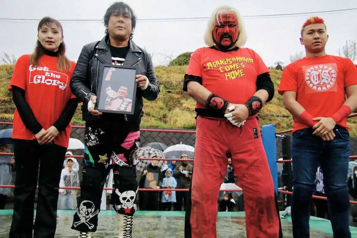 13日に「ジャンボ鶴田を忘れないで」大仁田厚(左から2人目)が山梨県甲斐市で25周年追善特別試合を実施した(主催者提供) Photo by 提供写真 大仁田厚「偉大なレスラーがいたことを忘れないで」 山梨の英雄・ジャン… ギャラリーで見る この記事のフォト 2025年04月13日の画像一覧 もっと見る 2025年04月13日の画像をもっと見る