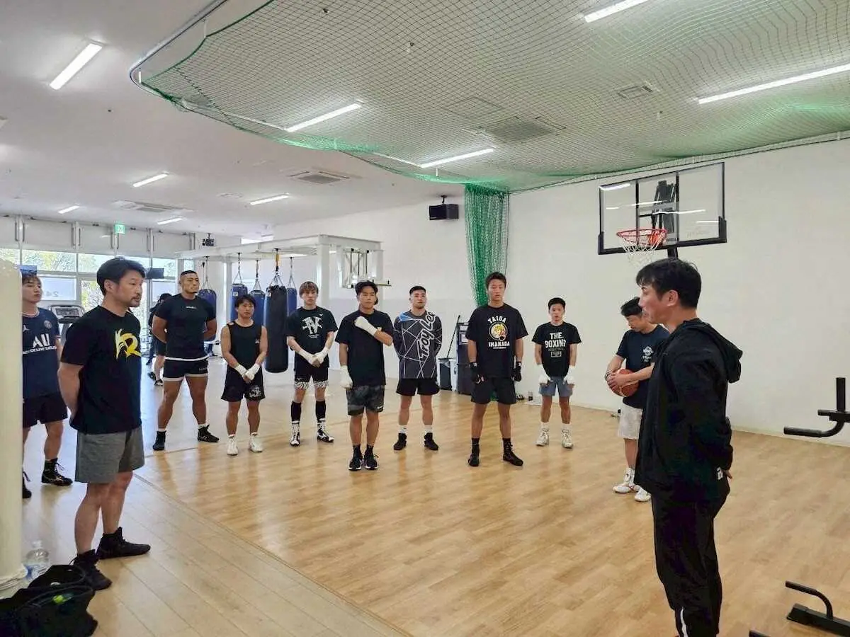 合宿には武居、力石の他に東洋太平洋ミニマム級王者・石井武志、日本ライト級3位・今永虎雅、アマ8冠の中垣龍汰朗、プロ3勝2KOの田中将吾、田中湧也、元K―1出身の星龍之介らが参加。