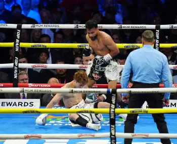 Tーモバイルアリーナには多くのファンが駆けつけて、リング上ではラウンドガールたちが試合を彩った。