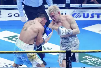 終始前に出てくる王者の圧力に屈した。序盤から連打で押し込まれ防戦一方。カウンターを狙っていくが、6回にはロープ際でラッシュを食らいヒヤリとするシーンもあった。しかし8回、ついに王者の動きが止まると、9回はリング中央で激しい打ち合い。10回にはついに左フックでダウンを奪い攻めに転じると、最後まで死力を尽くした打ち合いを見せたが、序盤の劣勢を逆転できなかった。