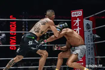 格闘技イベント「超RIZIN4 真夏の喧嘩祭り」(さいたまスーパーアリーナ)が27日に開催された。第9試合のバンタム級ワンマッチでは安藤達也(フリー)が、ヤン・ジヨン(韓国)で2R衝撃のリアネイキッドチョークで締め落として勝利した。