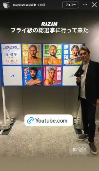 川崎は自身のインスタグラムストーリーズで「RIZINフライ級の総選挙に行って来た」と選挙ポスター前でのソロショットを投稿した。さらに自身のX(旧ツイッター)では「RIZINフライ級総選挙一回目の投票終わった。やはり選手のスピーチを聞くと心が揺らぐ」と投票会場での自撮りショットを投稿した。