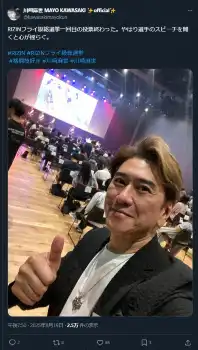 俳優の川崎麻世(62)が20日までに自身のSNSを更新。19日に開催された総合格闘技イベント「RIZIN」のフライ級GPの準決勝の進出者を決める「フライ級グランプリ2ndラウンド総選挙」に出席していたことを明かした。