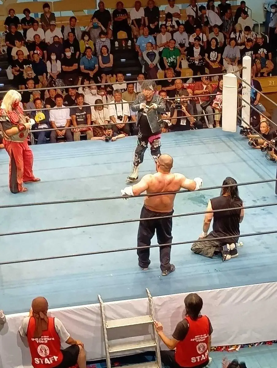敗れた大仁田は「29日、鶴見で初の電流爆破をやります」と宣言。平井丈雅代表を名指しし、「初代タイガーの愛弟子の間下が電流爆破をやるんだから、見届け人としてきてくれ」と要求した。間下は「29日、電流爆破で正々堂々決着つける」と息巻いていた。関根“シュレック”秀樹も「きっちりボコボコにしてやります」とこちらも強気にコメントだった。