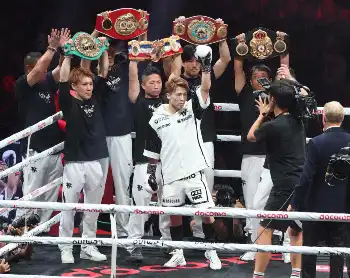 来年5月の東京ドーム決戦が内定する中谷潤人がリングサイドで観戦する中での圧勝。12月にサウジアラビアで行われるWBC同級1位のピカソ(メキシコ)戦を終えれば、いよいよ日本人頂上対決が実現する。試合後、会場を引き揚げる“標的”には「中谷くーん!あと1勝、12月お互い頑張って、来年東京ドームで戦いましょう!」と余裕のエールもかました。健在を示したモンスターは、まだまだ進化を続けていく。(伊東 慶久)