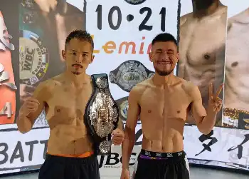 叩き上げ対決となった日本フェザー級タイトルマッチの計量を終えた王者・阿部麗也(左)と挑戦者・殿本恭平 Photo by スポニチ 【ボクシング】日本フェザー級タイトル戦は自動車部品業VS解体業の叩き上… 2025年10月20日の画像一覧 もっと見る 2025年10月20日の画像をもっと見る