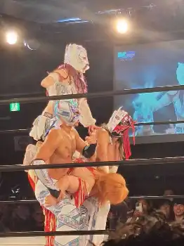 スターダムのスターライト・キッド興行のメインで6人タッグでスターライト・キッド(上)はドラゴン・キッド(左)、エル・デスペラード(右)と連係を見せる Photo by スポニチ 【スターダム】Sキッドが10周年記念興行で満員大成功 「まだまだ成長して… ギャラリーで見る この記事のフォト 2025年10月21日の画像一覧 もっと見る 2025年10月21日の画像をもっと見る