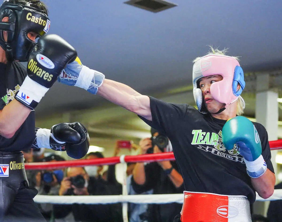 <那須川天心・公開練習>練習に汗を流す那須川(撮影・河野 光希) Photo by スポニチ 天心「別に隠すこともない」拓真陣営前で堂々公開スパー 世界王者には天… ギャラリーで見る この記事のフォト 2025年11月12日の画像一覧 もっと見る 2025年11月12日の画像をもっと見る