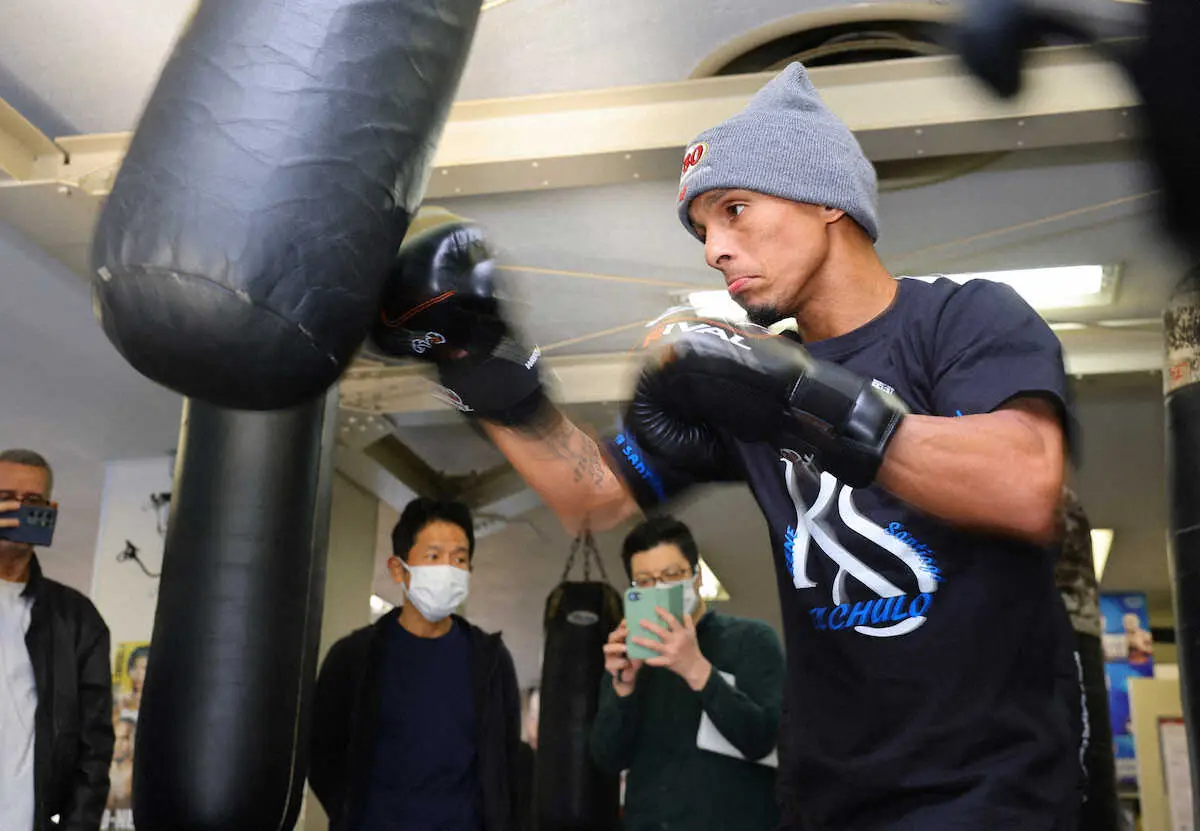 WBA世界ライトフライ級王者の高見亨介(23=帝拳、10勝8KO)との王座統一戦に臨む、WBO世界同級王者レネ・サンティアゴ(33=プエルトリコ、14勝9KO4敗)が11日、都内のジムで練習を公開。シャドーとサンドバッグ打ち、パンチングボールを叩き状態の良さをアピールした。母国プエルトリコ・ウマカオで練習を積んできたWBO王者は「試合に向けてのコンディションは100%。準備は万端だ」とベルト統一へ意気込んだ。