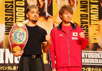 フォトセッションに臨む(左から)ユーリ阿久井、高見、サンティアゴ、堤、ドネア、オラスクアガ、桑原(撮影・大城 有生希) Photo by スポニチ 4回KO宣言の高見亨介 浜田代表の“グリーンライト”に余裕の笑み「逆に過ぎ… ギャラリーで見る この記事のフォト 2025年12月15日の画像一覧 もっと見る 2025年12月15日の画像をもっと見る