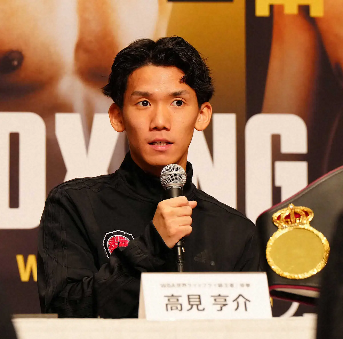 初防衛戦がいきなり統一戦となる高見に気負いは全くない。2本のベルトを前に「モチベーションは今までで一番高い。さらに獲りたい気持ちが強くなった」と目を輝かせる。