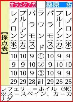 《完勝オラスクアガ4度目防衛》オラスクアガは完勝で4度目の防衛に成功した。1回に陣営がマウスピースを忘れて開始が遅れたが、得意の打撃戦で桑原を圧倒。「リスペクトする相手と打ち合えてうれしかった」と称える余裕だった。3階級制覇王者・中谷潤人の盟友は「誰でもかかってこい、という感じ」と自信をみなぎらせたが、試合後にリングから観客に配るはずだった自身のグッズも忘れたと明かし、「来年も12月に試合があればプレゼントしたい」と苦笑いした。