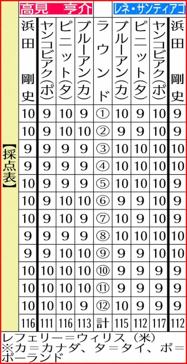 <WBA&WBO世界ライトフライ級王座統一戦 高見亨介・レネ・サンティアゴ>一2の判定負けの高見。後ろは喜ぶサンティアゴ(撮影・長久保 豊) Photo by スポニチ 元世界王者プロモーター「どこ見てんの!?」 トリプル世界戦のジャッジ… ギャラリーで見る この記事のフォト 2025年12月19日の画像一覧 もっと見る 2025年12月19日の画像をもっと見る