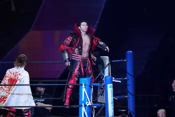 新日本プロレスは4日、「WRESTLE KINGDOM 20 in 東京ドーム」を開催。第1試合のNEVER無差別級6人タッグ選手権試合トルネードランボーに出場するDDT所属の武知海青が、男性ユニット「THE RAMPAGE」の生パフォーマンスで入場した。