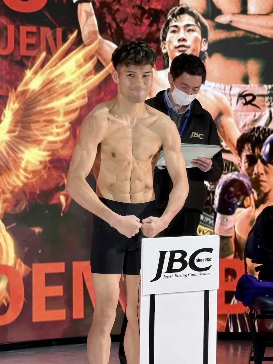 プロボクシング興行「フェニックスバトル149」(23日、東京・後楽園ホール)の前日計量が22日、都内で行われた。セミファイナルのフェザー級8回戦に出場する、日本同級15位の大橋蓮(24=大橋)はトハタセン・サリベク(中国)とともに57・0キロで一発クリア。計量後はマッスルポーズを決め、状態の良さをアピールした。
