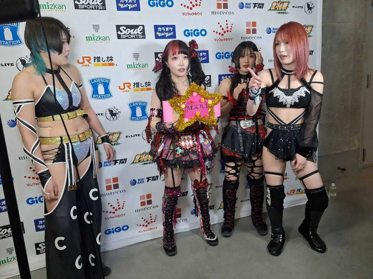 バックステージで伊藤は自らのベルトを誇示。雑に扱ったレディCを説教する場面も。「これは伊藤がつくった“かわいいベルト”だ。これをさくらあやと懸けて、タイトル戦“世界一かわいいのはどっちだタイトル戦”をやろうと思っている」と勝手にタイトル戦を決めてしまった。これに鹿島が「その前に1番はかわいいのが、さくらあやで2番手が稀杏でお前はもう3番目なんだよ」と完全に見下す発言に場外乱闘。鹿島をボコボコにし、古沢の「世界一かわいいのは伊藤ちゃん」の得意のかけ声に「知ってるよ」とお怒りモードだった。