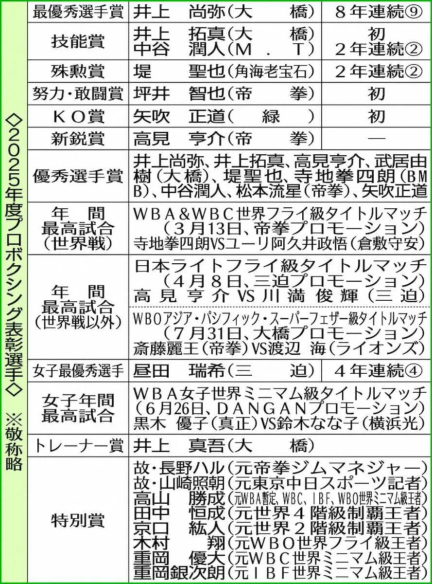 年間最優秀選手賞を受賞した井上尚弥(撮影・尾崎 有希) Photo by スポニチ 井上尚弥、5月・中谷戦「互いの勇姿を必ず見届けて」 正式発表前に堂々“… ギャラリーで見る この記事のフォト 2026年02月18日の画像一覧 もっと見る 2026年02月18日の画像をもっと見る