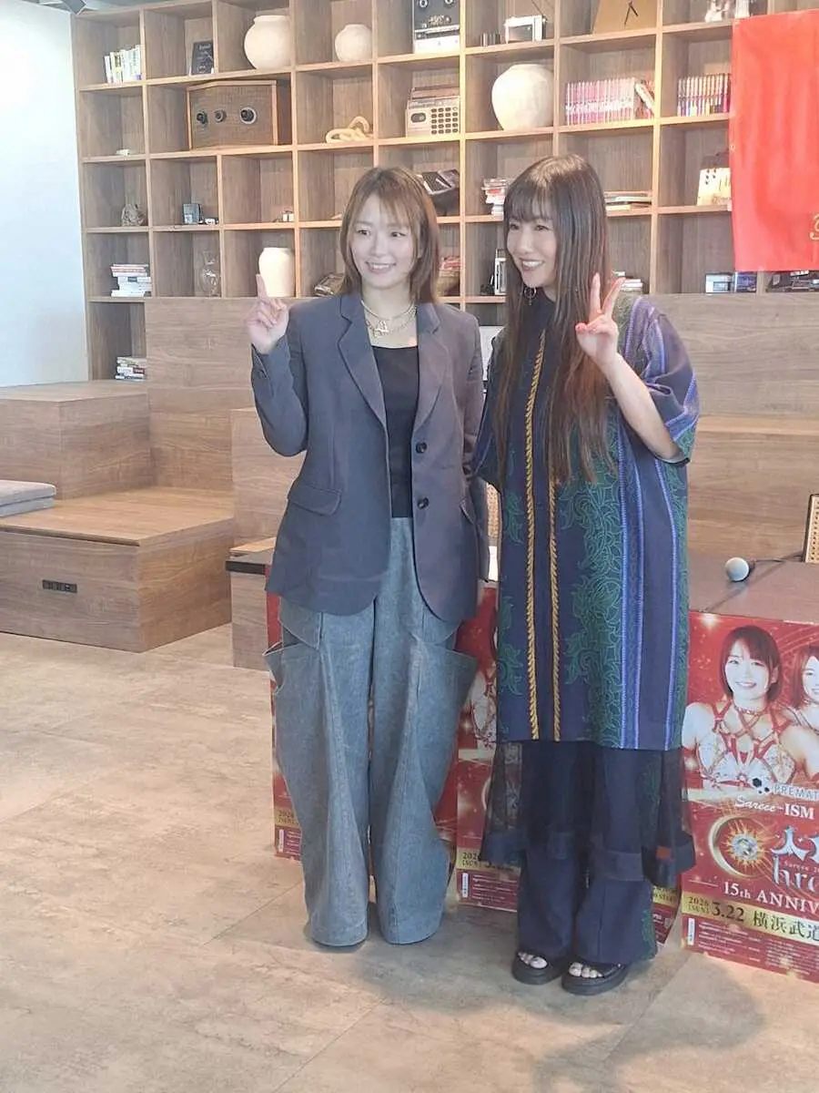 重大発表と題して会見にはSareeeとともに会見には島谷ひとみが登場。「フワちゃんです」とジョークで笑わせる。「新たな曲を書き下ろしました。“太陽神Prism”という新曲を作りました」と22日に新入場テーマ曲を発売することを発表した。