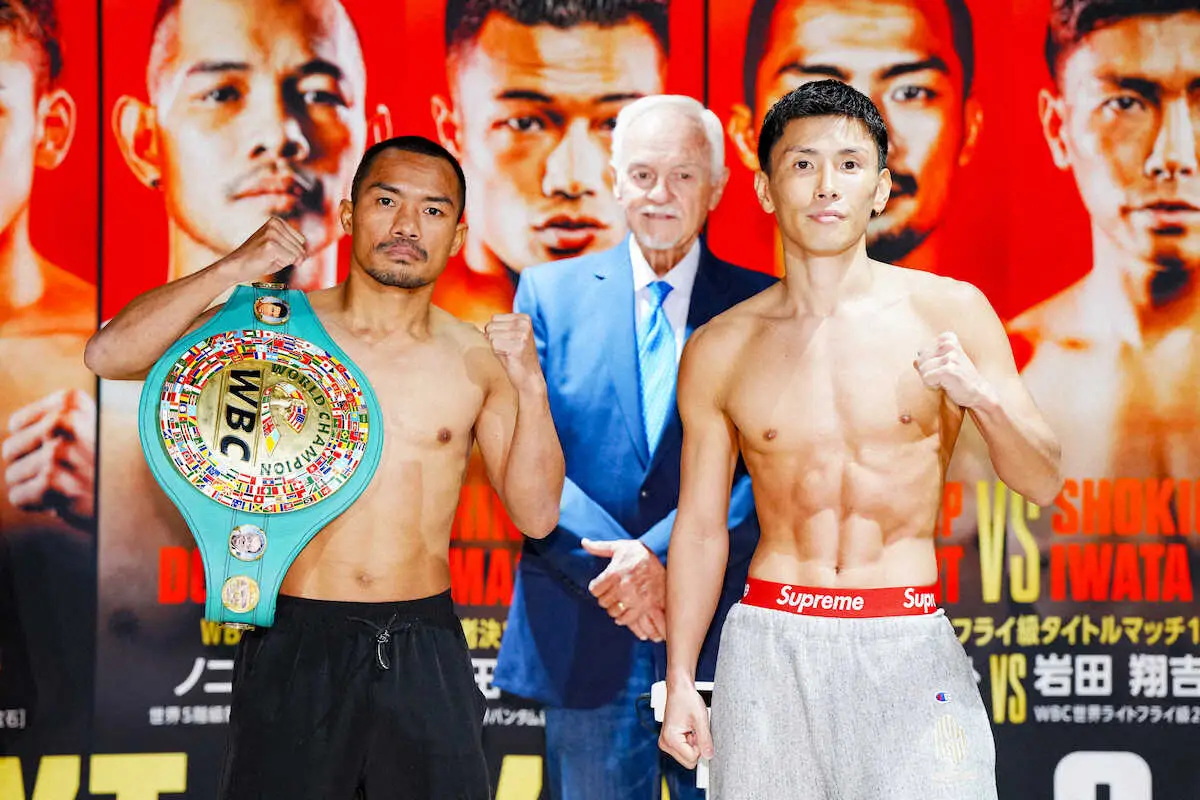 トリプル世界戦を含む興行の前日計量が14日、横浜市内のホテルで行われ、WBC世界ライトフライ級タイトルマッチに臨む同級2位の元WBO王者・岩田翔吉(30=帝拳、15勝12KO2敗)はリミットの48・9キロで一発クリアした。