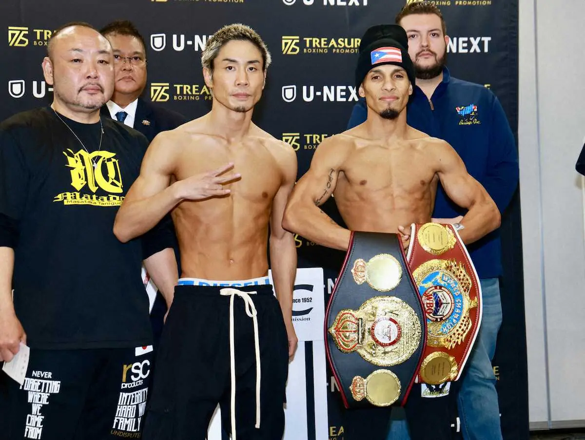 元WBO世界ミニマム級王者で、約3年3カ月ぶりの世界王座返り咲きを目指すWBO世界ライトフライ級4位、WBA同級7位の谷口将隆(32=ワタナベ)はリミットの48・9キロで一発クリア。迎え撃つWBA&WBO統一世界同級王者レネ・サンティアゴ(33=プエルトリコ)はリミットより300グラム軽い48・6キロでパスした。