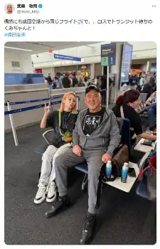 武藤敬司「偶然にも成田空港から同じフライトで…」LAで再会した人気歌手との2ショに「絵力すごっ」
