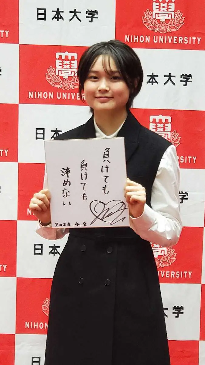 スポーツ科学部でレースにつながる研究に意欲を示し「男性でも体力的に厳しいレースの世界で、この(細身の)体でなぜ戦えているのかを研究することでもっとレベルアップできる可能性を秘めていると思う」。日大の学生では競泳の本多灯、寺門弦輝らがパリ五輪代表切符を獲得しており、「他の競技で活躍されている学生の方とも交流したい。凄く刺激になると思う」と語った。