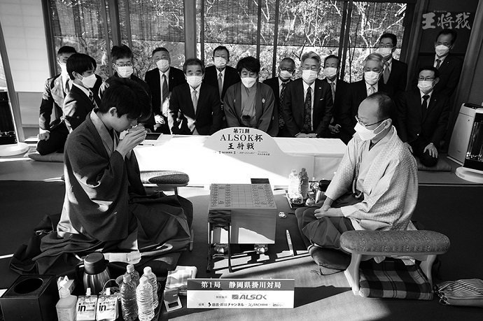 将棋界史上初、3冠VS4冠の激突となった第71期ALSOK杯王将戦。長い棋戦の歴史の新しい時代を到来を告げるべく、挑戦者として名乗りを上げたのは19歳・4冠保持者の藤井聡太竜王=王位、叡王、棋聖=だった。受けて立つのは棋界最高峰タイトル・名人ほか3冠保持者の渡辺明王将=棋王=だ。天下分け目の決戦、第1局の舞台は静岡県掛川市。2022年1月、厳しい寒さの中で行われた激しい戦いの表情をスポニチカメラマンが厳選。珠玉のフォトストーリーをお届けする(全20枚)。