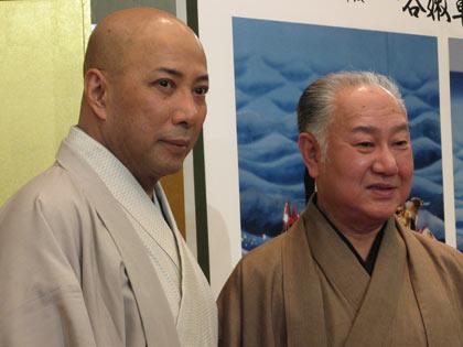 東京・銀座の歌舞伎座で行われる「三月大歌舞伎」の製作発表が28日、都内で行われ、坂田藤十郎(76)と市川団十郎(61)が出席した。東西の看板役者が、歌舞伎約400年の歴史上、初めて東京で共演。藤十郎は「興奮しています」、団十郎は「歴史の重みを感じながらつとめたい」と抱負。藤十郎は最高齢で「京鹿子娘道成寺(きょうかのこむすめどうじょうじ)」を披露。「20歳のころの気持ちで演じたい」と話すと、団十郎は「では私は10代の気持ちで」と応じ、笑いを誘った。3月2日初日。