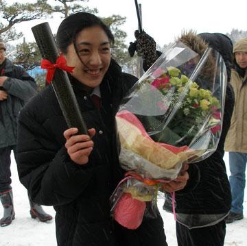 最終日は、長渕がタカラコスモスに卒業証書を見せ、別れを告げる感動の場面。佐々部監督から「OK」の声が掛かると、長渕は「初めてのことばかりで大変でしたが、楽しかった」と笑顔で話した。それでもスタッフから花束を渡されると涙。「馬の出産や、夏のロケでの落馬などが思い出に残っています」と振り返った。青森で8月に先行公開され、秋に全国公開。