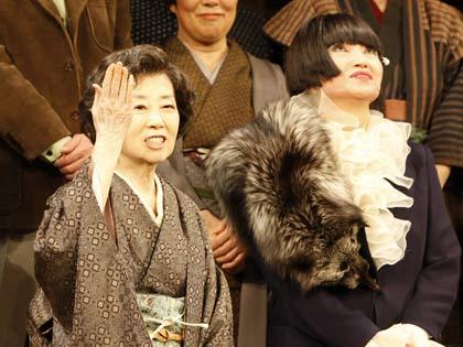 女優の森光子(87)が30日、公演回数1900回を突破した主演舞台「放浪記」について「2000回を目指します」と初めて明言した。東京・日比谷のシアタークリエでの公演が千秋楽を迎え、公演回数は1931回になった。今後、4都市を回り、今年中に1995回に到達。来年5月に東京・丸の内の帝劇での1カ月公演が決定したことを受け、特別カーテンコールで自ら発表した。