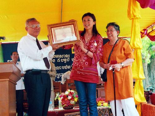 カンボジアに寄付した小学校が完成し落成式に出席した藤原紀香(中央)