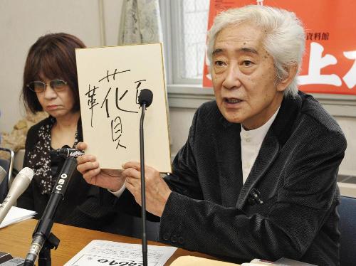 大阪府の財政再建で移転が検討されている大阪府立上方演芸資料館(ワッハ上方)の存続を求め、作家の藤本義一さんらが17日、約2万人分の署名を府に提出した。