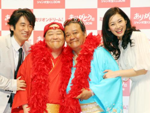 夢蔵は「1人でも多くの方に宝くじを買ってもらって、当せんした喜びを知ってほしい」と笑顔でPR。また、新CMにダチョウ倶楽部の上島竜兵(47)が、夢蔵そっくりの「小夢蔵」として起用されることも発表された。