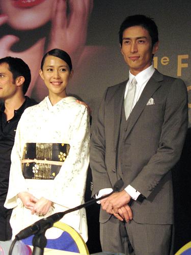 華やかな映画の祭典のオープニング会見に、木村は「やっぱり日本人ですから」と自ら選んだ桜の柄の着物姿で現れた。そんな彼女をグレーのスーツの伊勢谷がエスコート。着席時に伊勢谷が木村のポーチをさりげなく持ってあげるなど、カンヌで仲むつまじい姿を披露した。司会からは「夫婦役です」と紹介され、互いに少し恥ずかしそうに笑った。