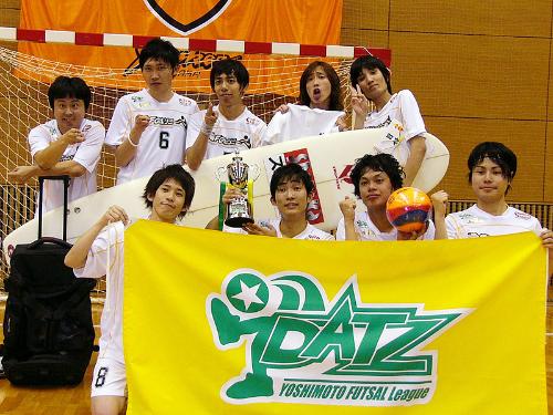 吉本興業所属のタレントによるフットサルリーグ「DATZ」が17日、大阪府門真市のなみはやドームで開幕した。6チームが3チームずつに分かれ、総当たりで対戦。それぞれのブロックを勝ち抜いた「若手の勢いFC」と「FCホソミー」が決勝で激突し、3対1で勝利したFCホソミーが初代王者に輝いた。