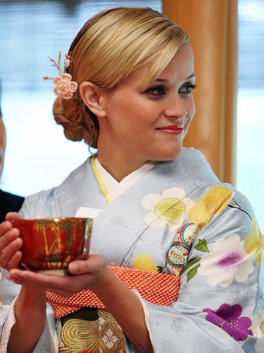 2005年に「ウォーク・ザ・ライン/君につづく道」で米アカデミー賞主演女優賞を受賞したリース・ウィザースプーン(32)が11日、都内で会見した。いまや女優ではハリウッド最高額のギャラと言われているが、今回の初来日は映画のPRとは無関係。女性への家庭内暴力と乳がんの啓発キャンペーンの大使としてで、関係者を前に講演も行った。着物姿で茶道にも挑戦。「伝統を大切にするのは素晴らしいこと」と話した。