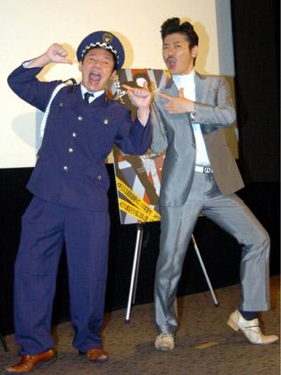エリート警官が田舎町に左遷されて思いも寄らない事件に巻き込まれるアクションコメディー。ナベアツは「スタイリッシュかつオモロー。(点数は)100点、いや300点!」と、3の倍数でアホになるネタでPRしたが、会場のまばらな笑いに「予想通り」と苦笑い。