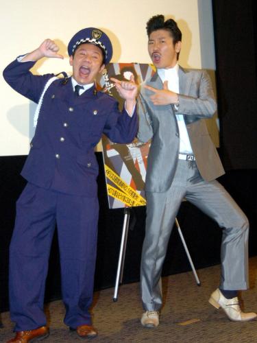 世界のナベアツ(38)が2日、都内で行われた英映画「ホット・ファズ~俺(オレ)たちスーパーポリスメン!~」の公開イベントに参加した。