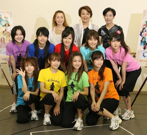 「シンデレラtheミュージカル」に出演する「モーニング娘。」の高橋愛(前列左から2人目)と麻路さき(後列中央)ら