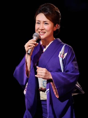 440席の会場はファンで満席。14枚目のニュー・シングル「海峡おけさ」をはじめ、デビュー曲「風群」、オリジナルシングル作品から「波止場うた」「海峡こえて」「おんな酒」など全24曲を熱唱。途中、カバー曲コーナー「昭和のおんな歌」で初のドレス姿を披露。いつもと違う大人の女性を演じた。