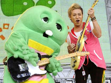 人気キャラクターのガチャピンがギターバンドを結成、俳優つるの剛士をボーカルに迎えて13日に東京都内のイベント会場でライブに挑戦した。