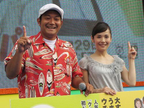 フジテレビ系「クッキングパパ」の公開制作発表に出席した山口智充、富田靖子
