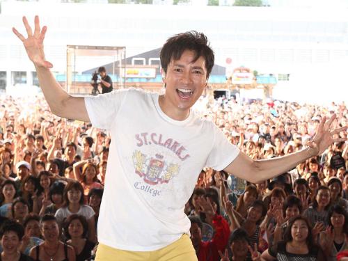 歌手の郷ひろみ(52)が16日、東京・台場のフジテレビで開催されている「お台場冒険王」でライブを行った。野外ステージに集まった約3000人を前に「こんなに暑いのにありがとう。いい汗かいて帰って」とあいさつ。「2億4千万の瞳」「君だけを」など4曲を熱唱した。最後は「GOLD FINGER2001」を歌いながら客席に降りる場面も。ライブ後、客に、もみくちゃにされた際にできた腕のひっかき傷を見せながら「ファンの好きという気持ちの表れだから仕方ないよね。1回目の結婚の時は、妻にこの傷で(浮気を)疑われたんですよ」と話して笑いを誘った。