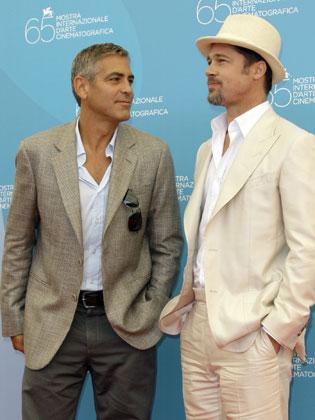会見でブラッド・ピット(右)に助け舟を出したジョージ・クルーニー