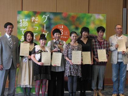 小泉今日子(42)上野樹里(22)、森三中らが27日、東京・武蔵野市役所で友好市民証を授与された。小泉が主演の映画「グーグーだって猫である」(9月6日公開)の舞台が吉祥寺で同市のPRに貢献したと評価された。少女漫画家・大島弓子氏が飼い猫たちとの日々をつづったエッセーの映画化。撮影を振り返った上野が「最後の収録で(森三中の)村上(知子)さんが“もう会うこともないわね”って言い放ったのがショックで。その時も泣いたけど…」と話すと突然涙。森三中のメンバーは大慌てだった。