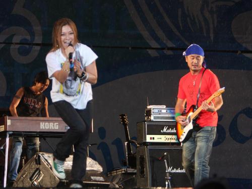 今年6月30日に俳優羽田昌義(31)と“できちゃった結婚”したhitomi(32)が左手薬指に結婚指輪をつけて登場。結婚後初の公の場で、現在妊娠6カ月。観客に「6月に結婚していまはおなかに赤ちゃんがいるんですけど2倍のエネルギーでいきます!」と報告。「LOVE2000」など熱唱した。シークレットゲストのDJ OZMA(年齢非公表)は紅白歌合戦で問題になった過激な衣装で登場し、EMIからエイベックスに移籍を発表。05年に解散した「Do As Infinity」が3年ぶりに復活することになった。